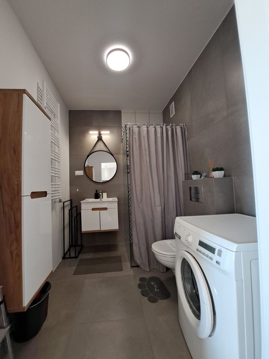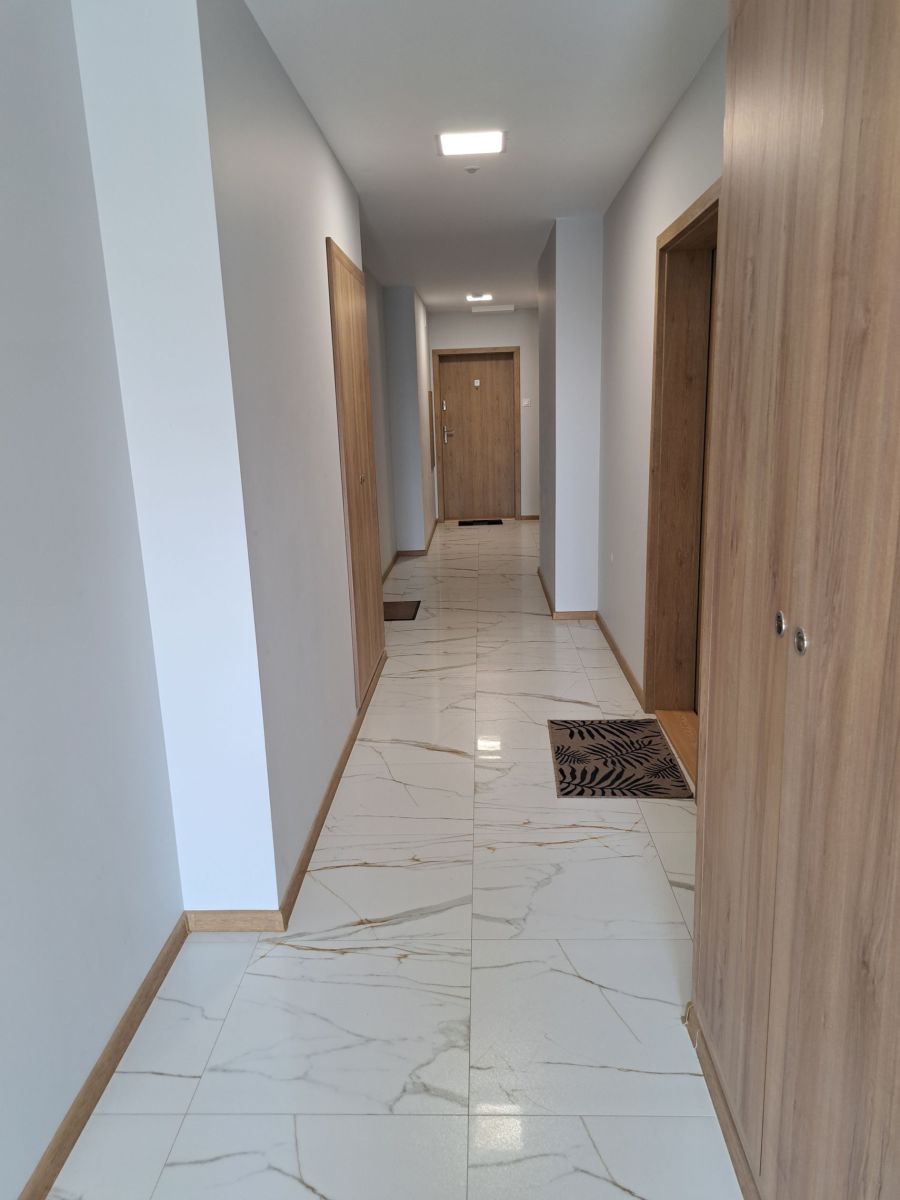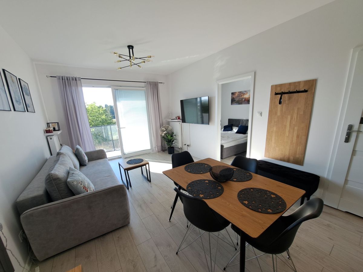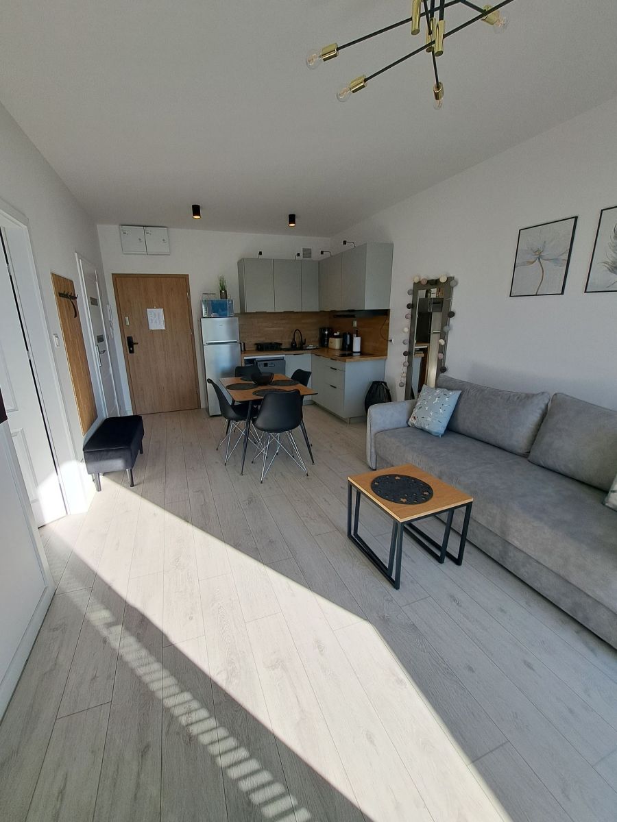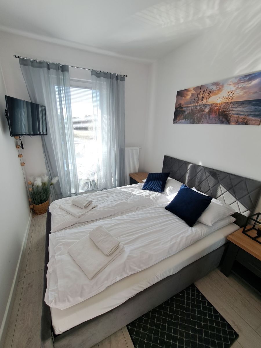 Duże okna wychodzą na stronę zachodnią, co zapewnia naturalne doświetlenie wnętrz i przyjemną atmosferę przez cały dzień. Mieszkanie jest w pełni przygotowane pod wynajem turystyczny, wykończone wysokiej jakości materiałami: