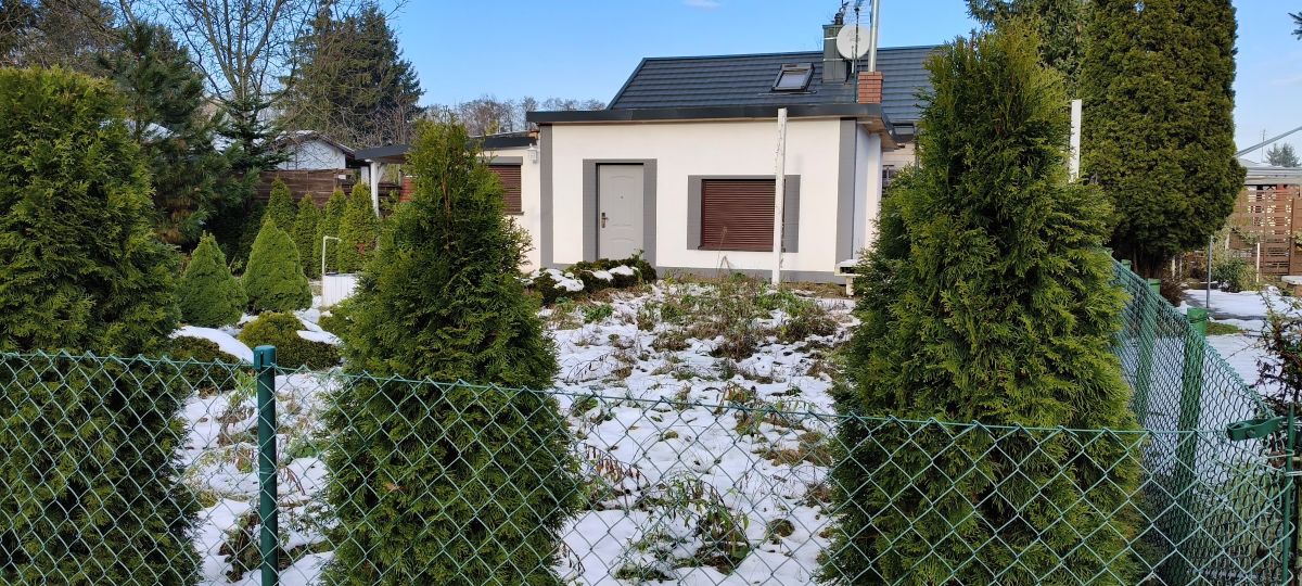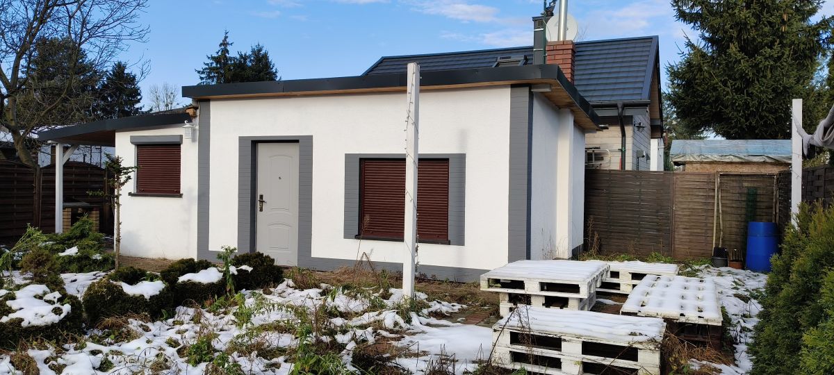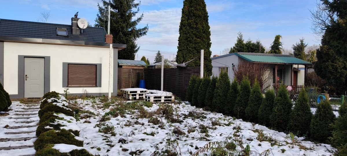 Działka o powierzchni około 400m2. Na jej terenie znajdują się wieloletnie nasadzenia kwiatów, krzewów oraz owoców. Domek murowany, ocieplony o powierzchni około 30m2. Pokój główny z urządzonym aneksem kuchennym oraz miejscem wypoczynkowym. Łazienka wyłożona ładnymi płytkami; z kabiną prysznicową, ciepła woda z bojlera elektrycznego. W domku drugi - mniejszy pokój z małą garderobą. W salonie znajduje się tzn. `koza` - piecyk, który ogrzewa cały domek. Nowe okna pcv z roletami zewnętrznymi, nowe drzwi wejściowe. Teren działki ogrodzony. W pobliżu działki wyznaczony teren do parkowania samochodów.