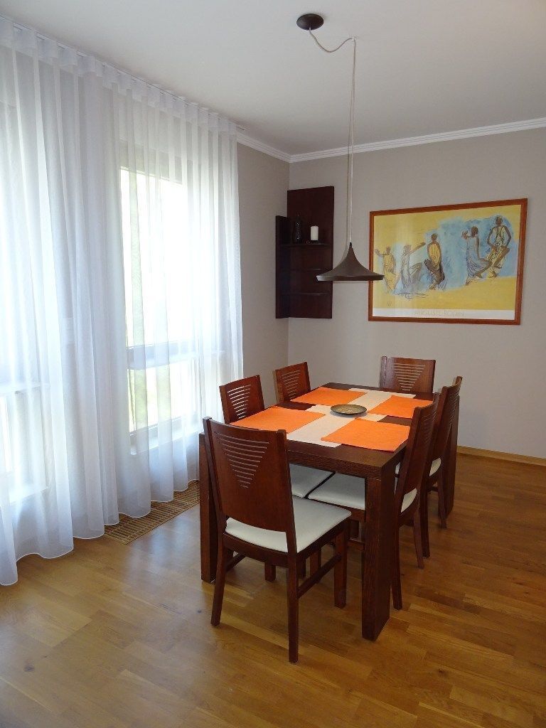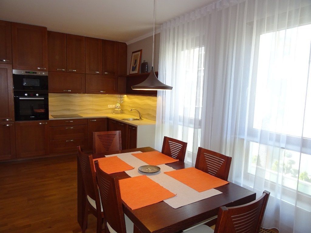 Wykończenie wnętrza to najwyższa jakość materiałów, gwarantująca nie tylko estetykę, ale i trwałość. Salon z wygodnym wyjściem na przestronny taras to idealne miejsce na relaks i spotkania z bliskimi. Kuchnia z jadalnią jest w pełni umeblowana i wyposażona w wysokiej klasy sprzęt: zmywarkę, lodówkę z zamrażarką, piekarnik, mikrofalówkę oraz okap.